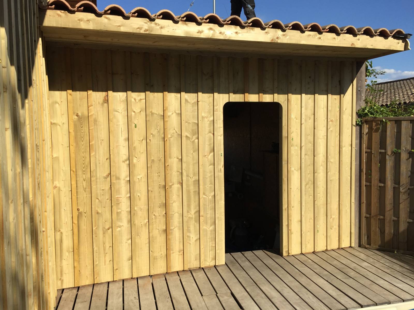 Dans le cas présent, les clients souhaitaient un bardage en volige couvre joint en Douglas.