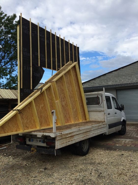 L'entreprise Laflaquiere met son savoir-faire à votre disposition pour réaliser ce type de projet. Les photos présentées illustrent la surélévation d’une maison située à Talence. On y voit la préfabrication des murs en ossature bois, réalisée dans notre atelier de Martillac, avant leur transport et pose sur le chantier.