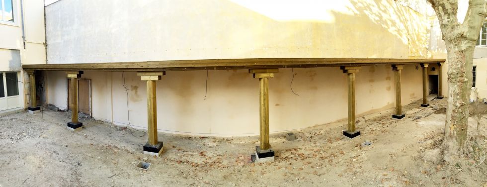 Création d'une galerie de circulation extérieur abrité en bois appelé "Coursive" dans la ville de Bordeaux